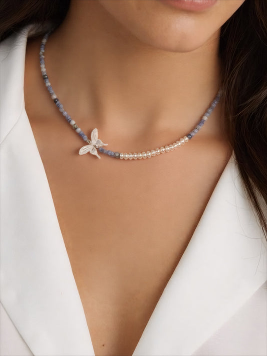 Sterling Silver One-Word Irregular Pearl Tassel Necklace